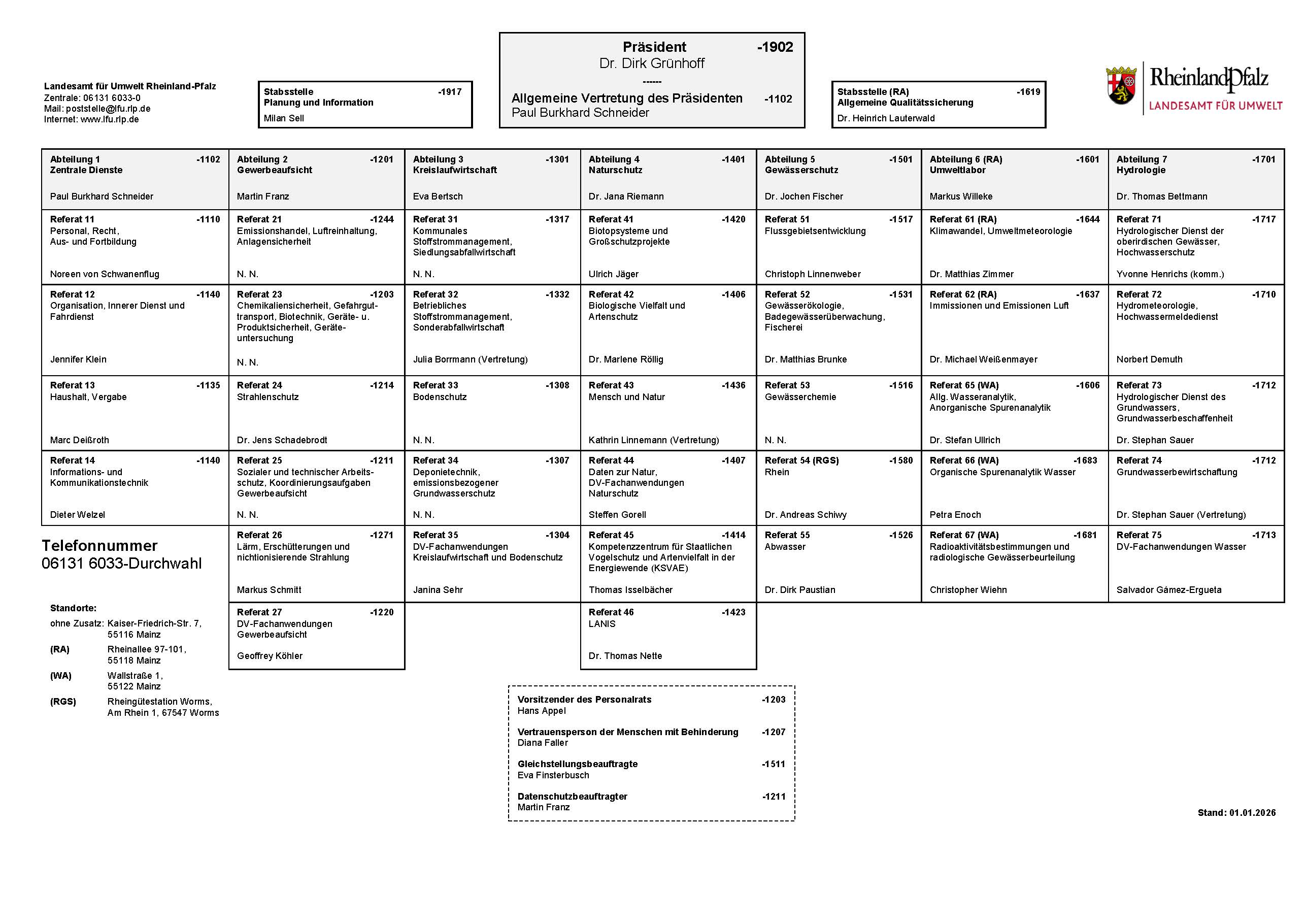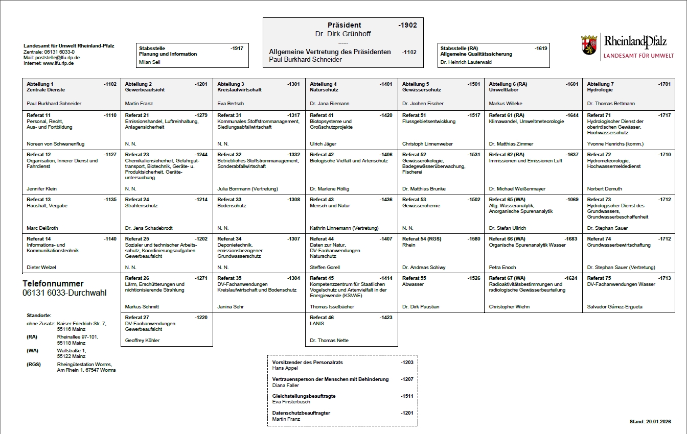 - Das Referat „Klimawandel“ beobachtet und analysiert anhand meteorologischer Messdaten den Klimawandel in Rheinland-Pfalz. Die Entwicklungen werden unter anderem in den Themenheften über den Klimawandel in Rheinland-Pfalz dokumentiert.