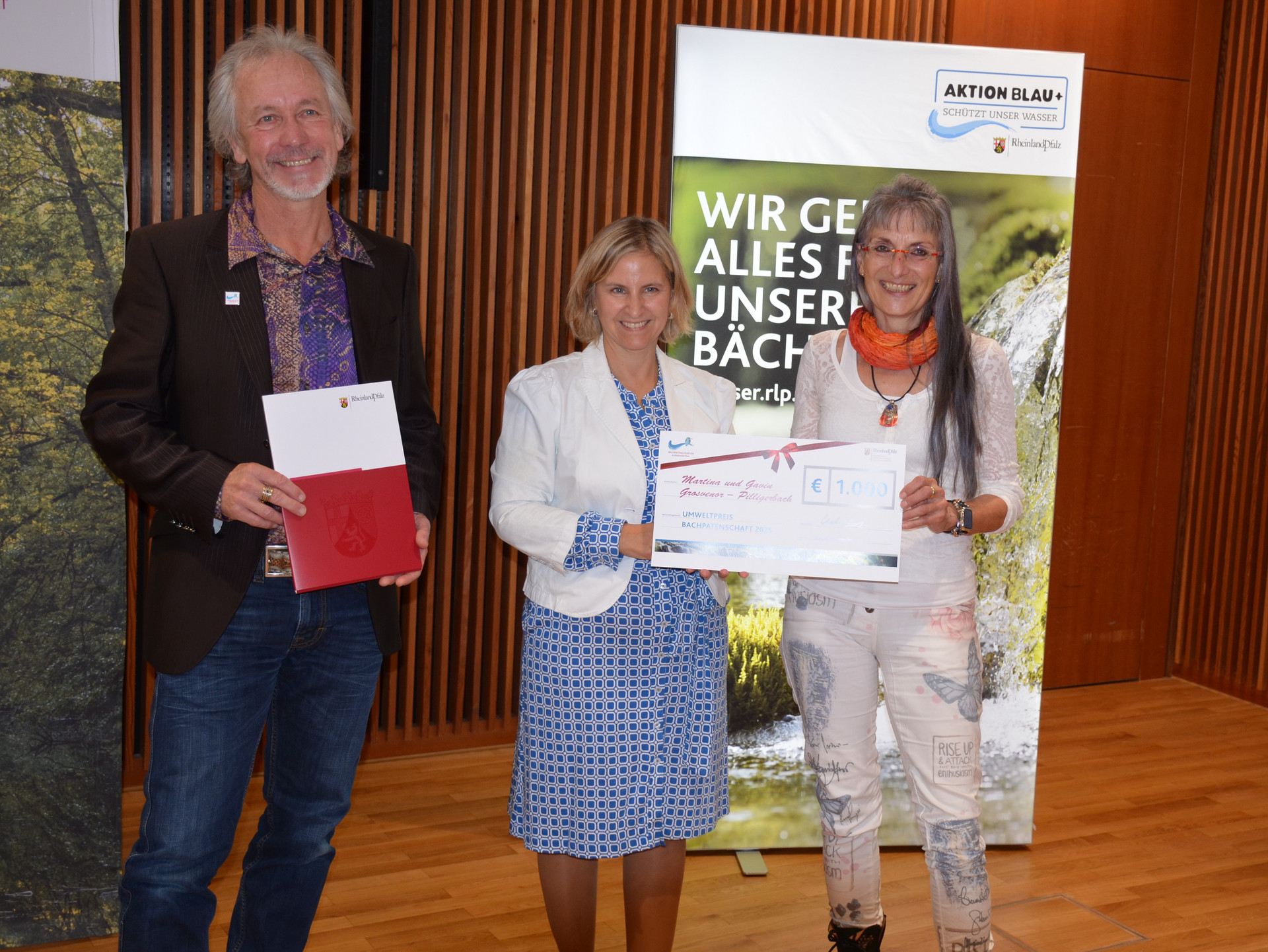 Am 4.11.2015 überreichte Umweltministerin Ulrike Höfken einmal mehr den mit jeweils 1.000 Euro dotierten Umweltpreis an folgende drei beispielhafte Bachpatenschaften: